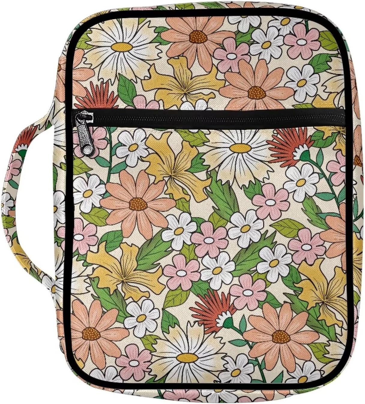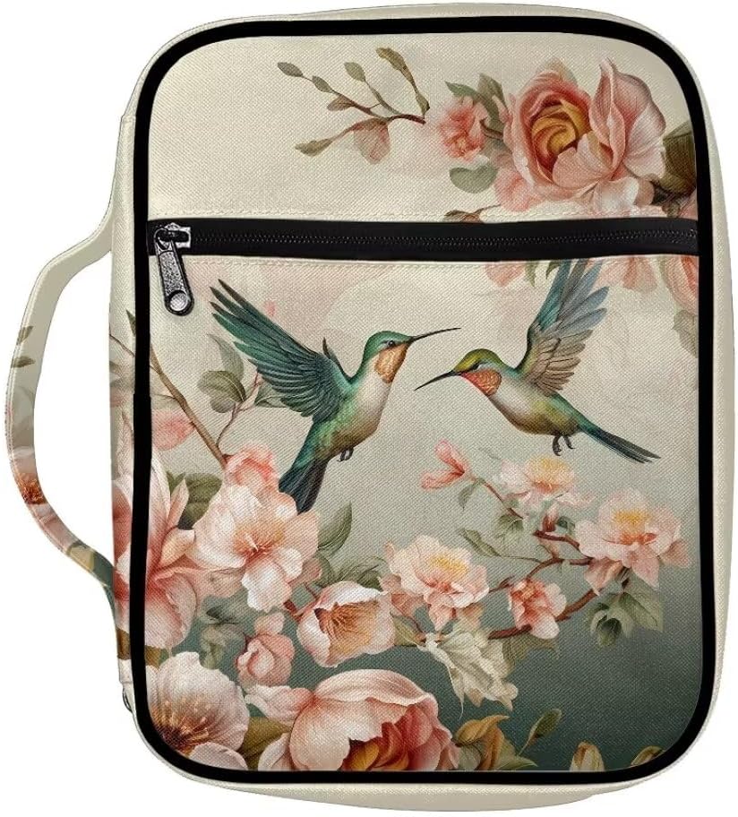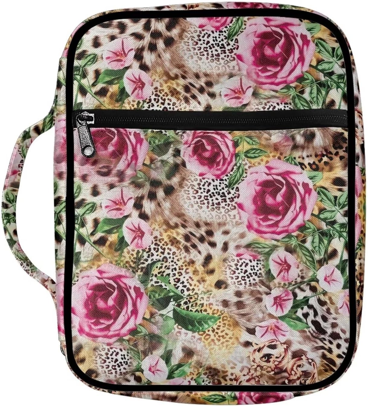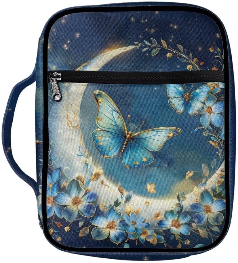Coldinair Pink Rose Print Bible Covers for Women Blue Butterfly Carrying Book Case Church Bag Bible Protective with Bookmark with Zippered Pocket Church Bag Bible Protective Handbag